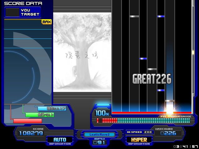 動画にて要望のあったスコアレートの表示位置に悩んでます。BGA部に表示される判定数と並べて表示するという手もありますが、そこのところの意見を求みます(どこに表示したら見やすいか等)。